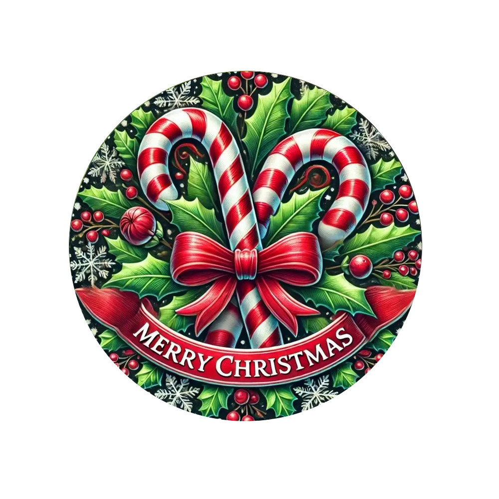 Nyomtatott fa tábla koszorú közép - Cukorpálcás 11,8cm – koszorú díszítéséhez