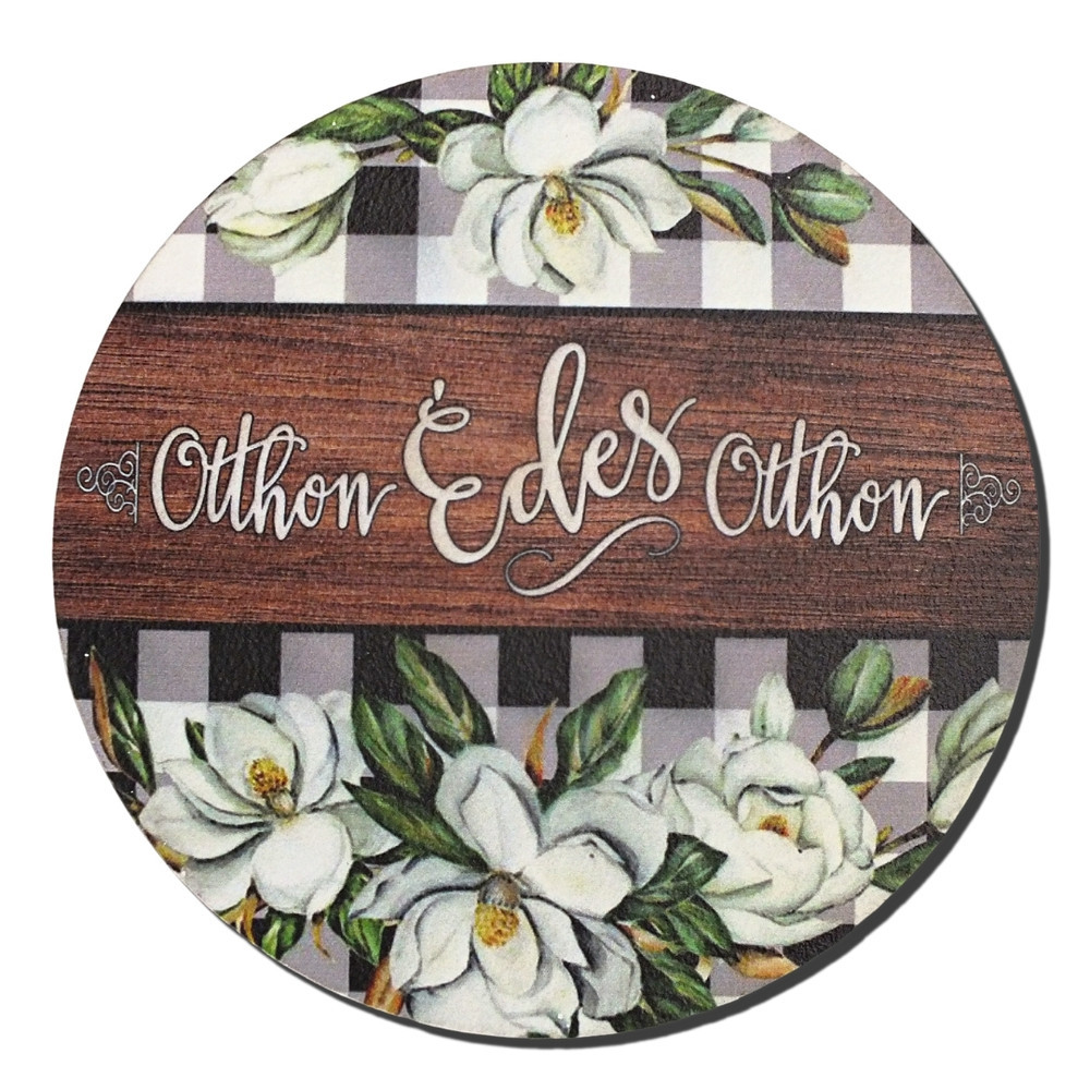 Az "Otthon édes otthon" felirat kellemes, otthonos hangulatot teremt. Ez a nyomtatott fa tábla tökéletes választás, ha szeretnéd felhívni vendégeid figyelmét arra, hogy különösen figyelmet fordítasz az otthonodban a szépségnek. A tábla letisztult megjelenése magával ragadja az otthon meleg és barátságos légkörét. Ezenkívül fontos megemlíteni, hogy ez a tábla kiválóan illik a koszorúkhoz és kopogtatókhoz. A gyönyörű magnólia mintázat kellemesen harmonizál a kiegészítő elemekkel, így még vonzóbbá és hangulatosabbá varázsolja otthonod külső részét. A vendégek garantáltan észreveszik és elismerik az otthonod különleges karakterét.Méret: átmérő: 11,8cm, vastagság: 3mm