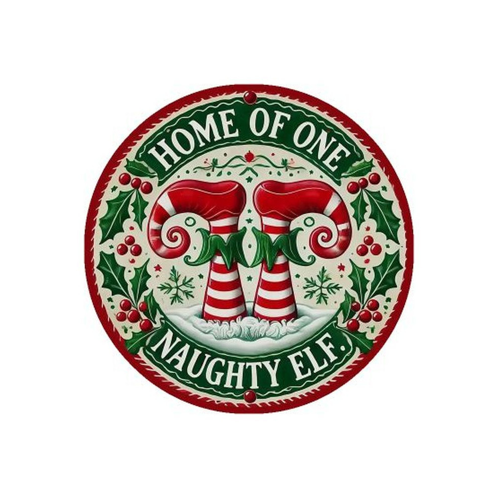 Nyomtatott fa tábla koszorú közép - Elf lábak 11,8cm – koszorú díszítéséhez