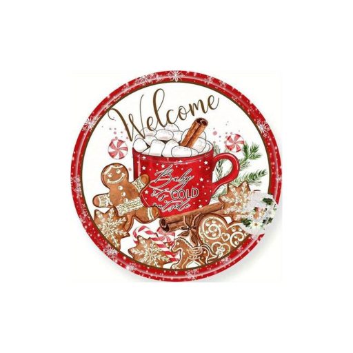 Nyomtatott fa tábla koszorú közép - Fahéjas forró csoki 11,8cm – koszorú díszítéséhez