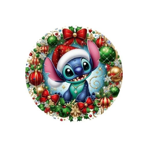Nyomtatott fa tábla koszorú közép - Karácsonyi Stitch 14,8cm – koszorú díszítéséhez