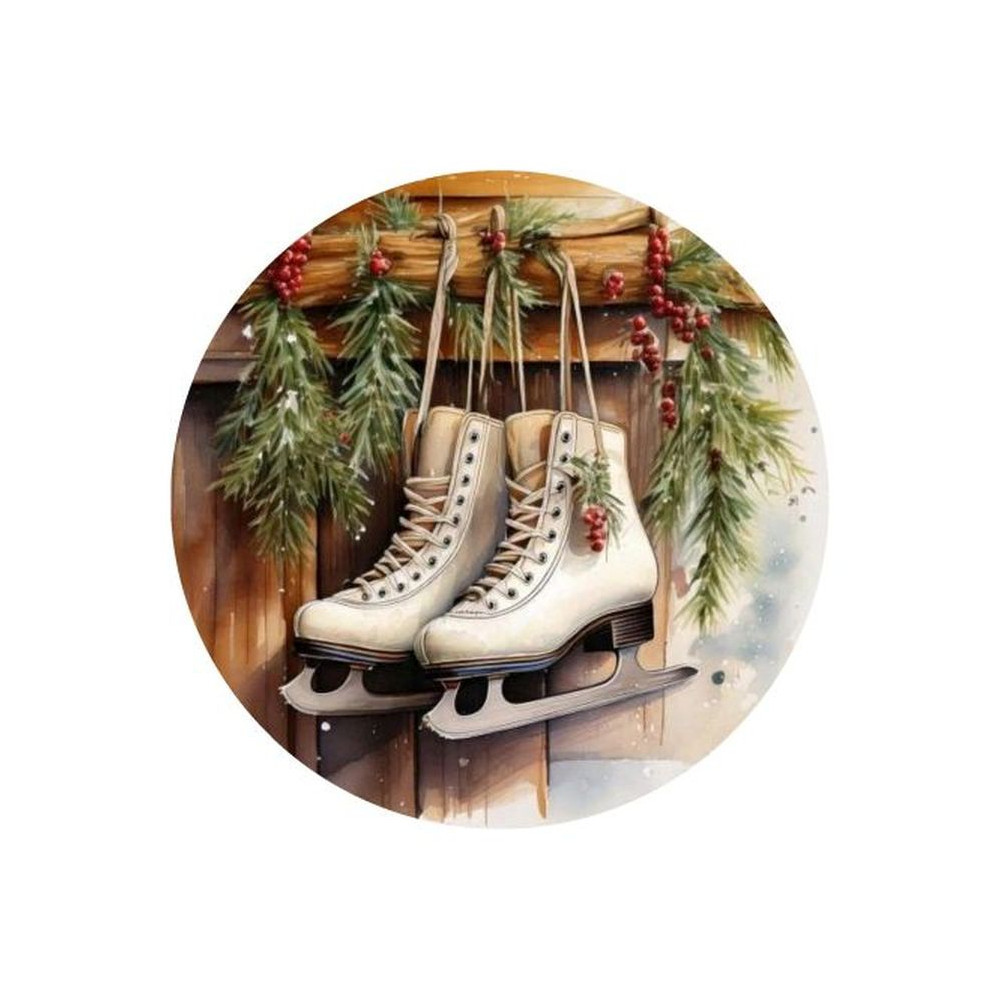 Nyomtatott fa tábla koszorú közép - Korcsolya cipők 14,8cm – kreatív dekorációhoz