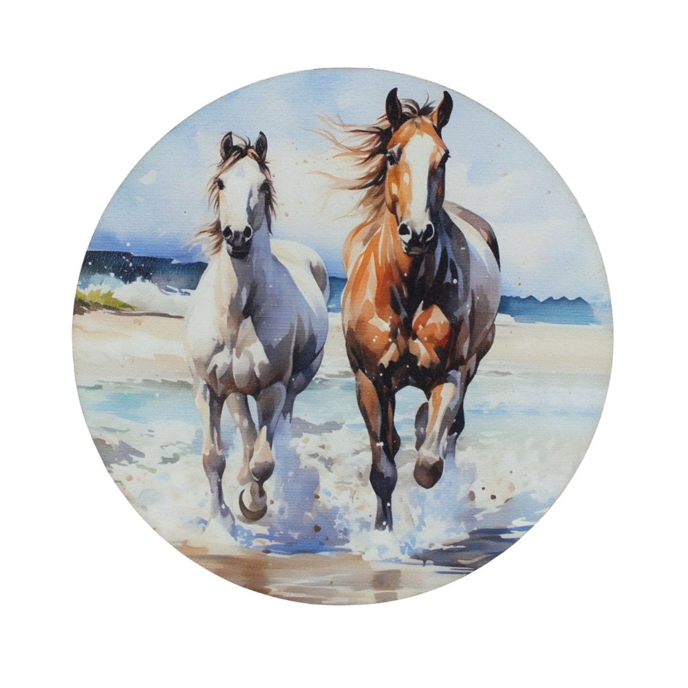 Nyomtatott fa tábla koszorú közép - Lovak tengerparton 11,8 – kreatív dekorációhoz