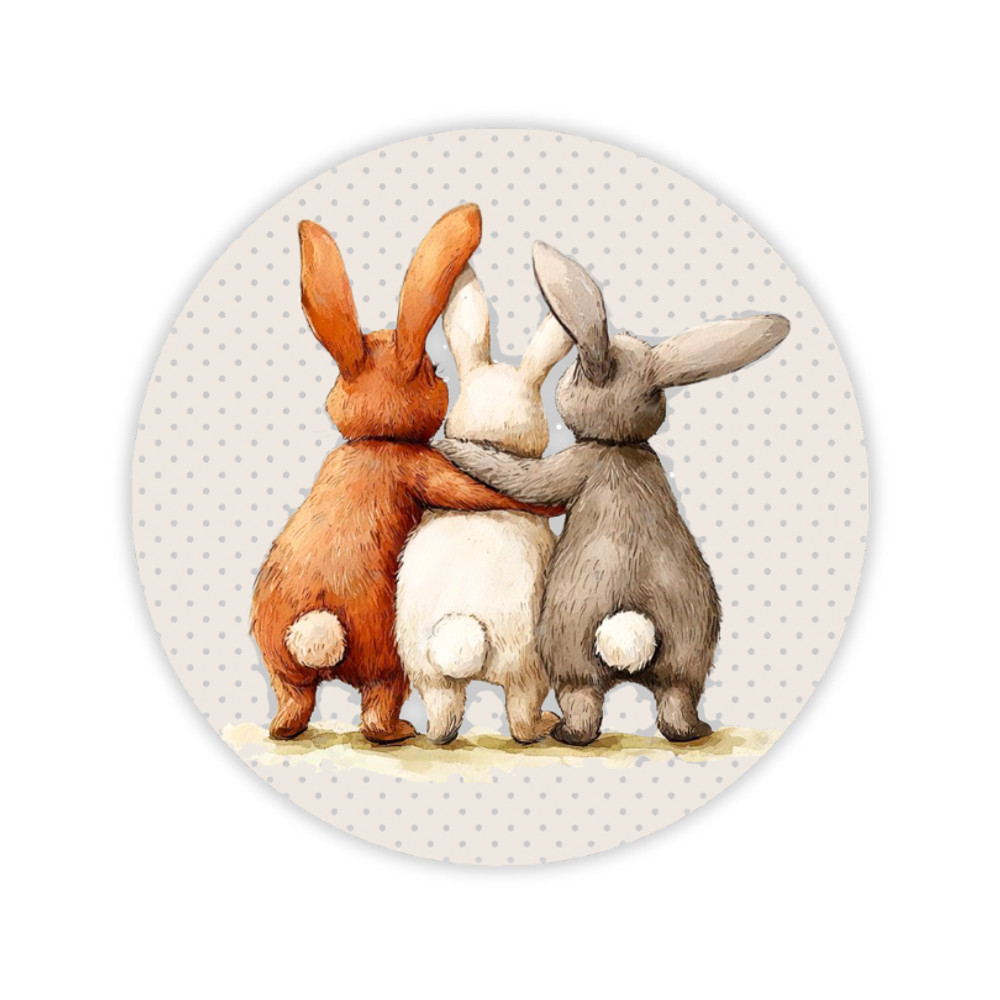 Nyomtatott fa tábla koszorú közép - Nyuszi barátok 11,8cm – koszorúkészítéshez és ajtódíszhez