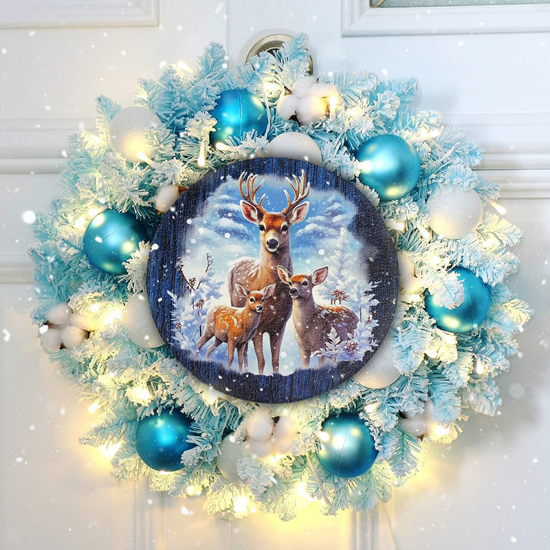 Nyomtatott fa tábla koszorú közép - Szarvas és őzikék 14,8cm – karácsonyi koszorúhoz és asztaldíszhez