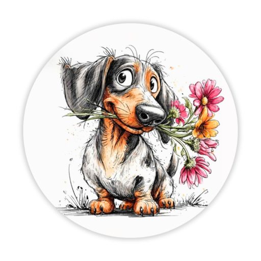 A tacskó kutyás, tavaszi hangulatú nyomtatott fa tábla koszorú közép 14,8 cm-es méretben kedves és figyelemfelkeltő kiegészítője a dekorációknak. Saját gyártású termék, amely különleges eljárással, precíz lézervágással és nyomtatott felülettel készül. Ideális választás koszorúk középrészének, ajtódíszekhez vagy egyedi dekorációs kompozíciók hangsúlyos elemeként. A tavaszi motívum és a tacskó ábrázolás barátságos, vidám összhatást teremt. Ajánlott mindazok számára, akik a kézzel alkotott dekorációikat egy egyedi, igényesen kidolgozott fa táblával szeretnék hangsúlyossá tenni, és eltérni a hétköznapi megoldásoktól.Méret: 14,8cm