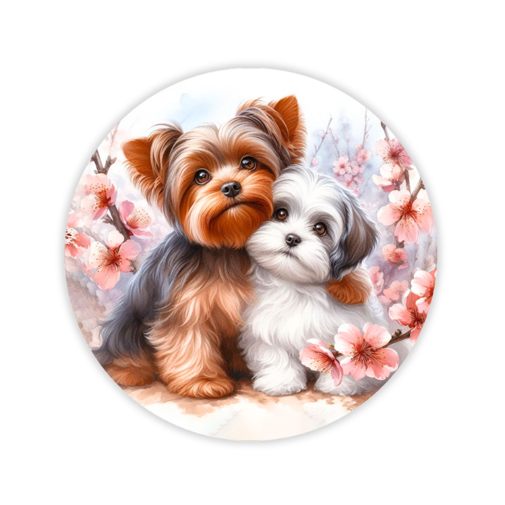 Nyomtatott fa tábla koszorú közép -Yorki kutyusok 11,8cm – koszorúkészítéshez és ajtódíszhez