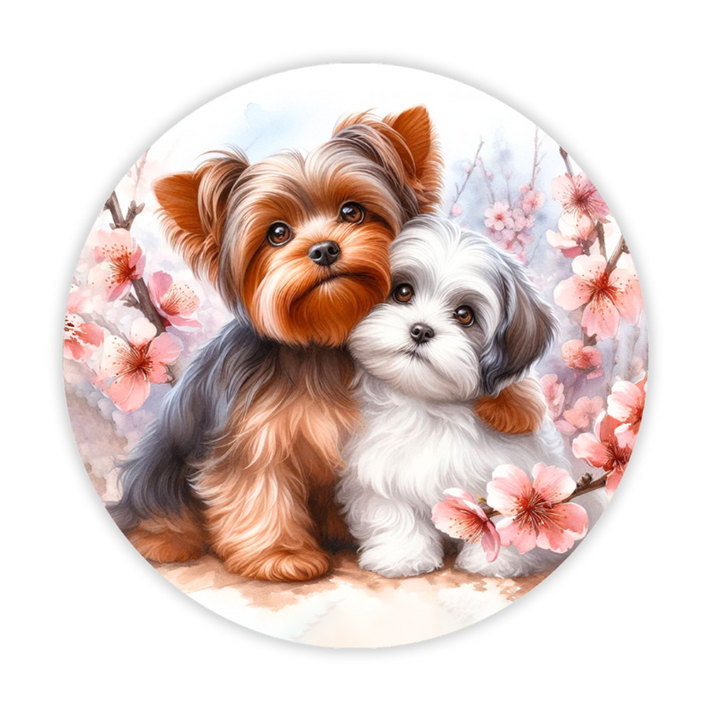 Nyomtatott fa tábla koszorú közép -Yorki kutyusok 14,8cm – koszorúkészítéshez és ajtódíszhez