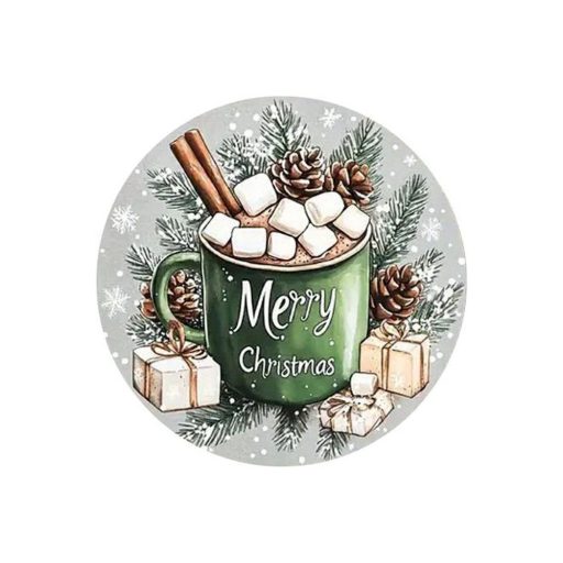 Nyomtatott fa tábla koszorú közép - Zöld bögrés 14,8cm – koszorú díszítéséhez