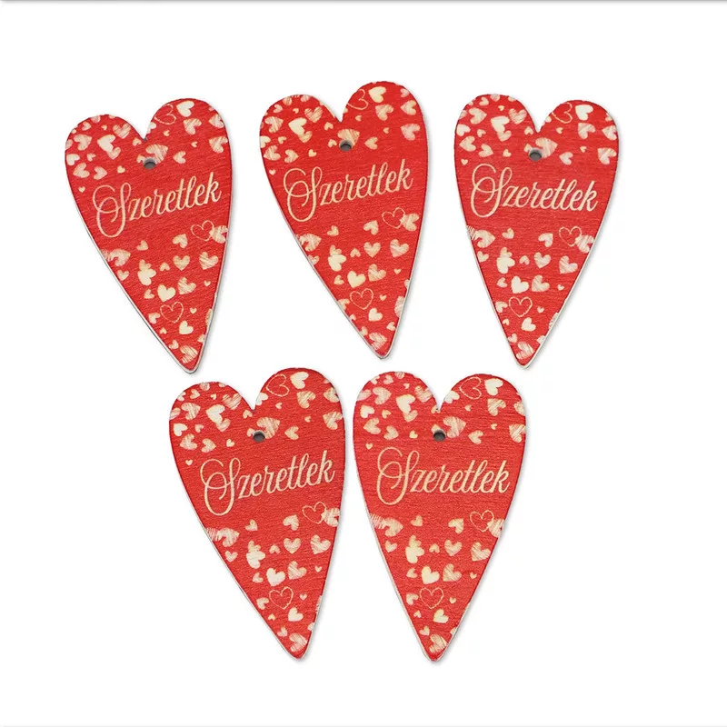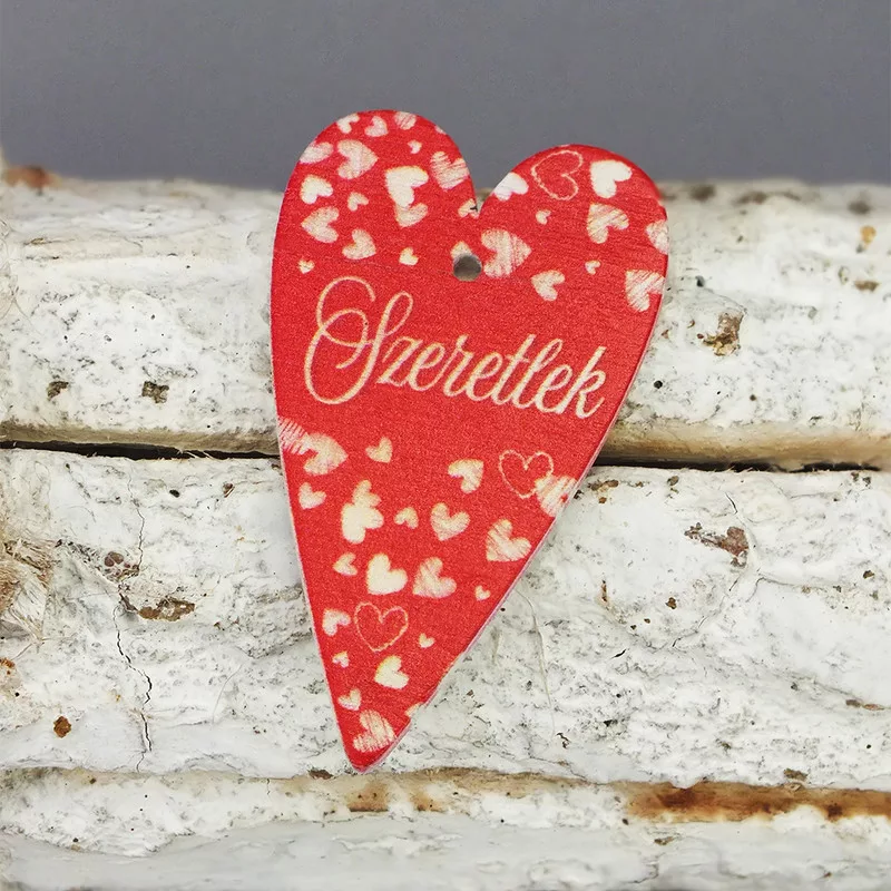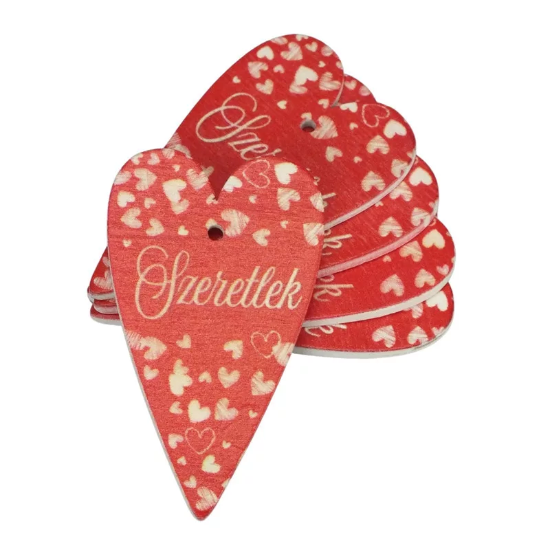 Nyomtatott fa tábla -Szeretlek szív 6cm piros 5db – anyák napi dekorációhoz