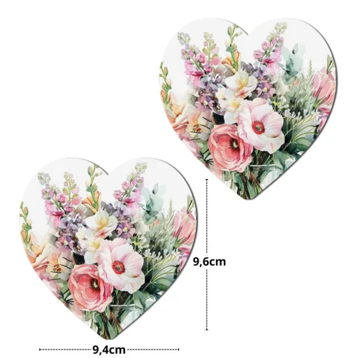Nyomtatott fa tábla - Vadvirágos szív 9,6cm 2db/csomag – anyák napi ajándékhoz és dekorációhoz