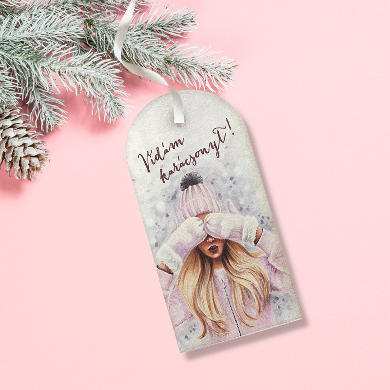 Nyomtatott fa tábla - Vintage karácsonyi tábla 2db/csomag - Női arc – karácsonyi koszorúhoz és asztaldíszhez
