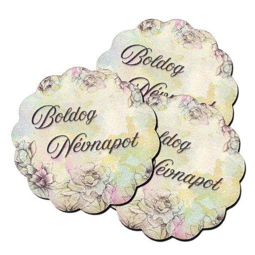 Nyomtatott fa tábla - Virágos tábla - B. névnapot 3db/csomag – ajándékcsomagoláshoz és ünnepi dekorációhoz