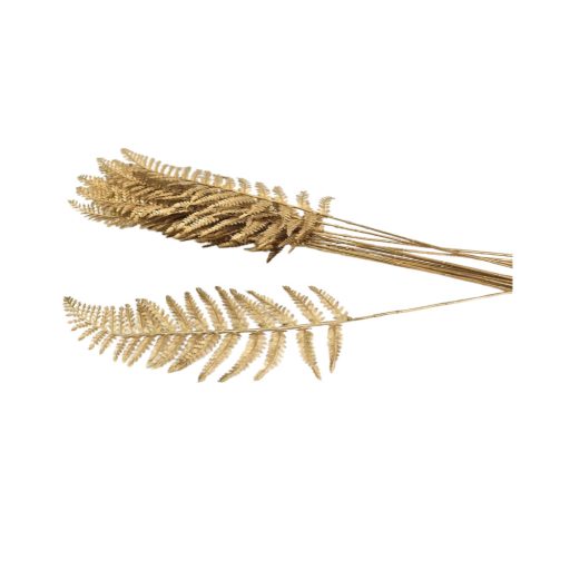 Óriás erdei pajzsika ág matt arany 12db/csomag – virágdekorációhoz, koszorúhoz