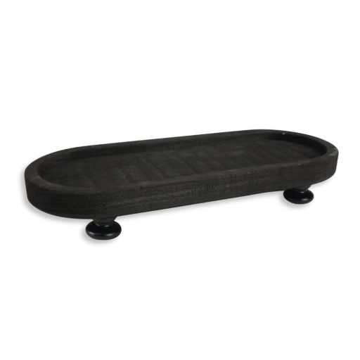 Ovális fa tálca lábon fekete 40x16cm 24/# – koszorúkészítéshez