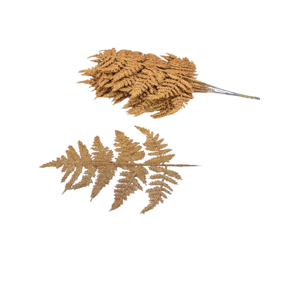 Páfránylevél csillámos réz 12db/csomag – koszorúhoz, természetes dekorációhoz