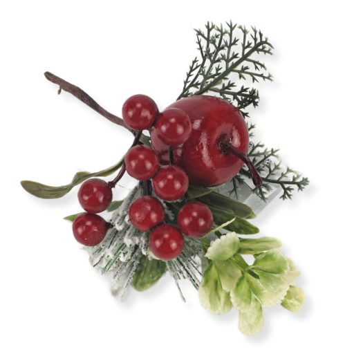 A piros almás bogyós pick az ünnepi időszak meleg, hangulatos színeit hozza el.Élethű mű növényei és apró részletei természetes hatású díszítőelemet alkotnak, amely feldobja a téli dekorációkat. Tökéletes kiegészítő koszorúkhoz, ajtódíszekhez, asztali kompozíciókhoz vagy ajándékcsomagok díszítéséhez.Méret: hossz: 16cm