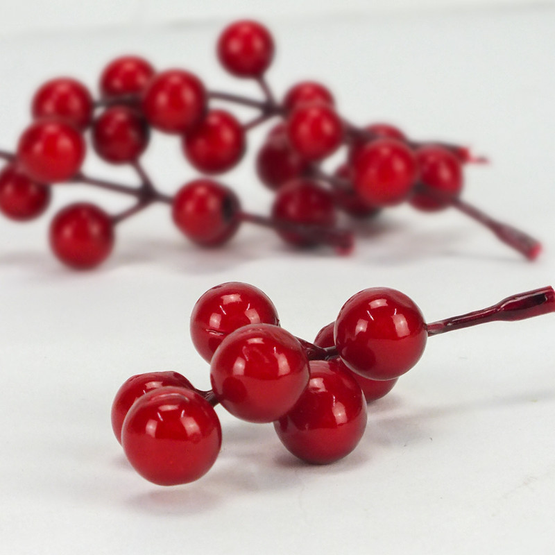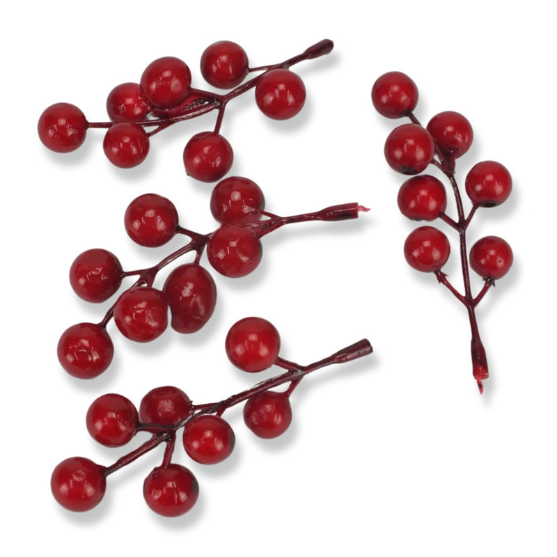 Piros bogyópick hosszúkás 4db/csomag – virágdekorációhoz, koszorúhoz