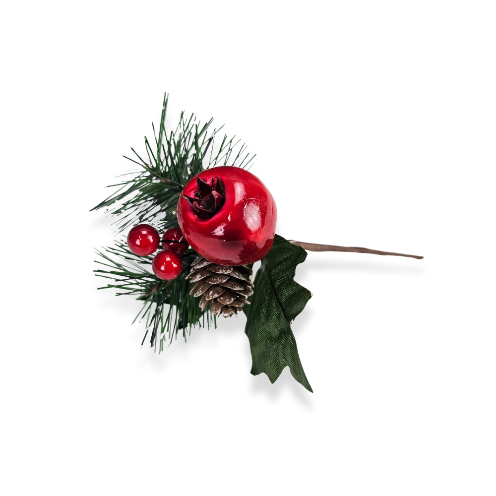 Piros bogyós ág tobozzal – virágdekorációhoz és koszorúhoz