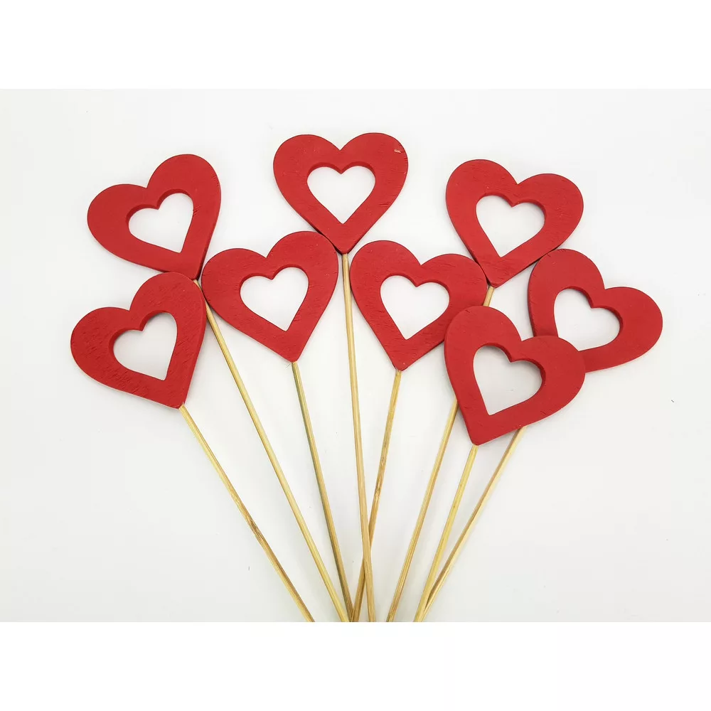 Pálcikák szívecskés fejjel. Dekorációnak, ajándékkiegészítőnek.Méret: 6,5x7cm + pálca, vastagság:5mm. Felhasználható valentin napi és szerelmes ajándékhoz, romantikus dekorációhoz. Szívekkel, szalaggal és személyes üzene