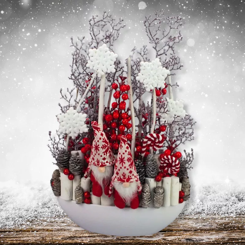 Piros skandináv manó – karácsonyi dekorációhoz és koszorúhoz