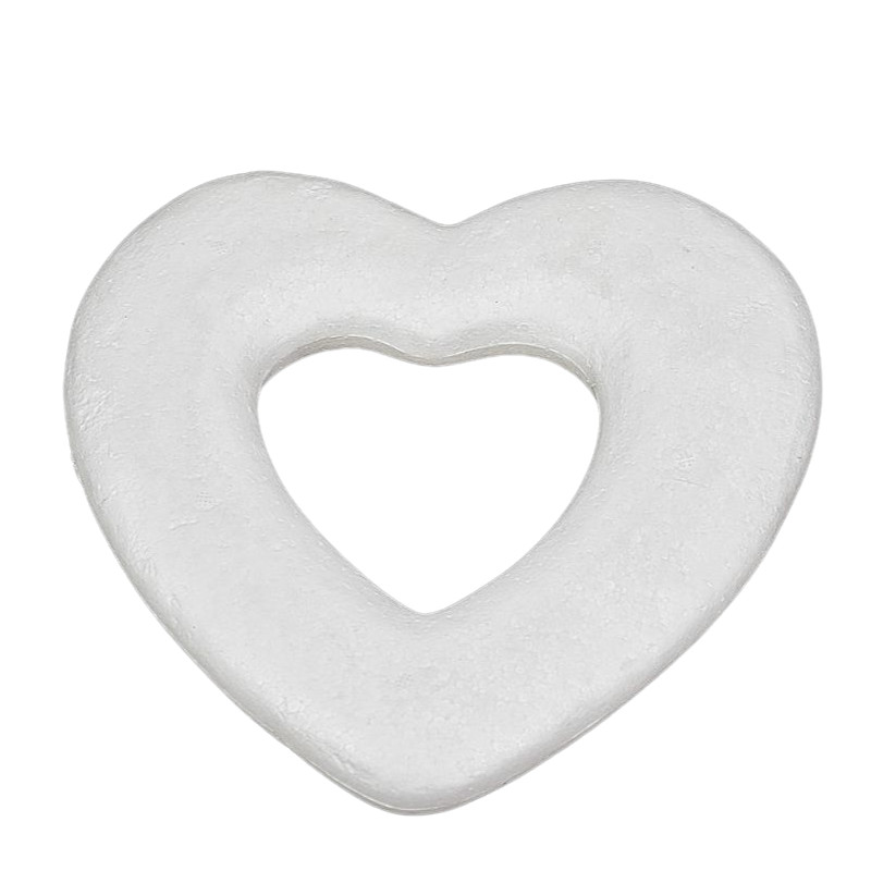 Polisztirol szívecske ragasztható felületű: pl.: habrózsával kombinálva szív rózsa készíthetőMéret: 27cm. Felhasználható valentin napi és szerelmes ajándékhoz, romantikus dekorációhoz. Szívekkel, szalaggal és személyes ü