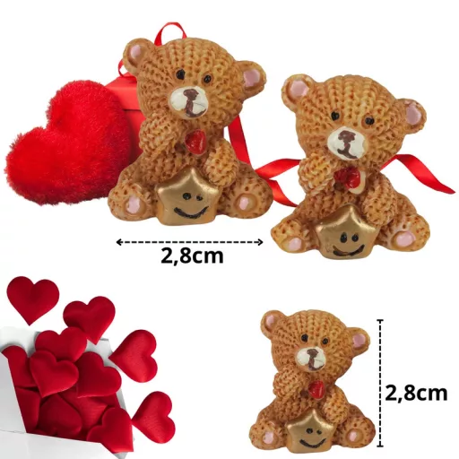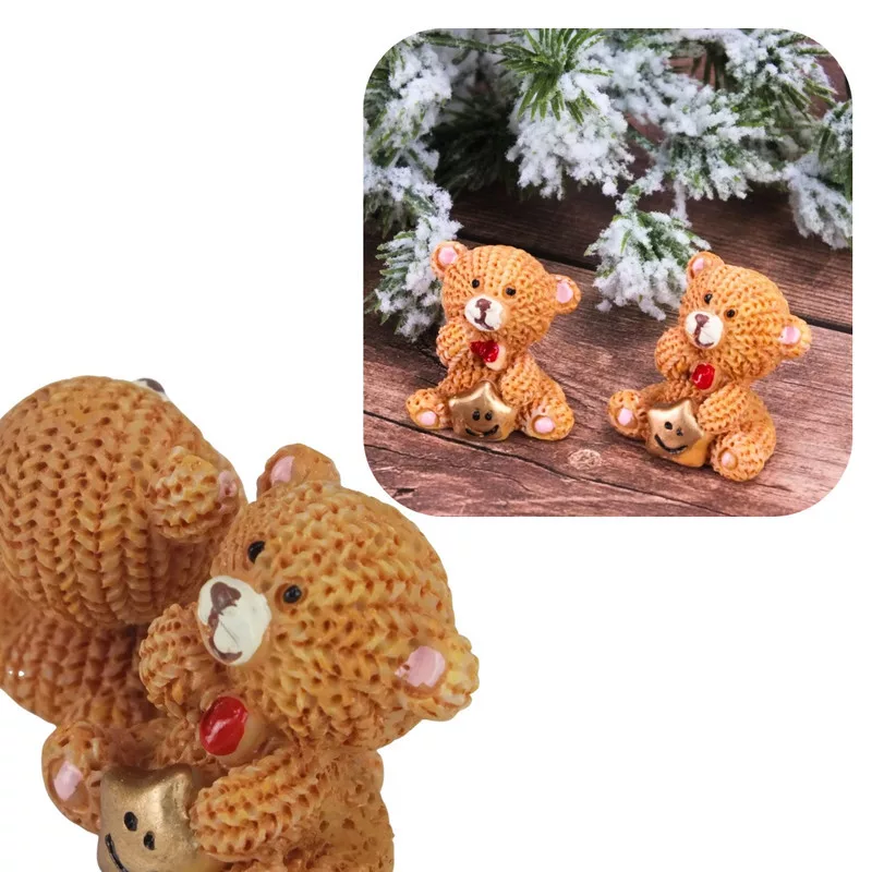 Poly ülő macik csillaggal 2db/csom – karácsonyi dekorációhoz és koszorúhoz
