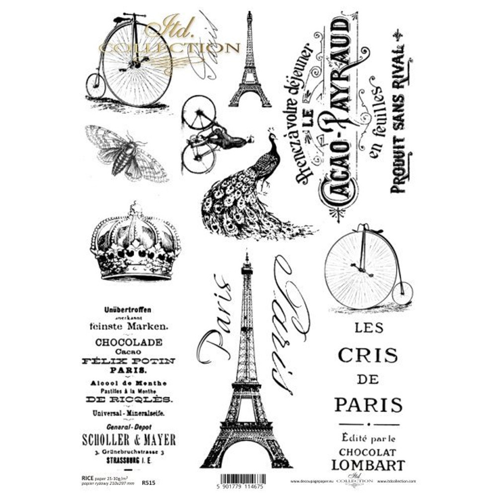 Dekupázs (decoupage) technikához használható rizspapír.A Dekupázsolás amennyire egyszerű, annyira nagyszerű módja a dekorálásnak. Egy natúr, szimpla dobozból is egy elegáns vagy rusztikus, antik hatást keltő dekorációt varázsolhatsz.Méret ~ 21x29,7cmA dekupázsoláshoz szükséges összes kelléket megtalálsz a weboldalon!