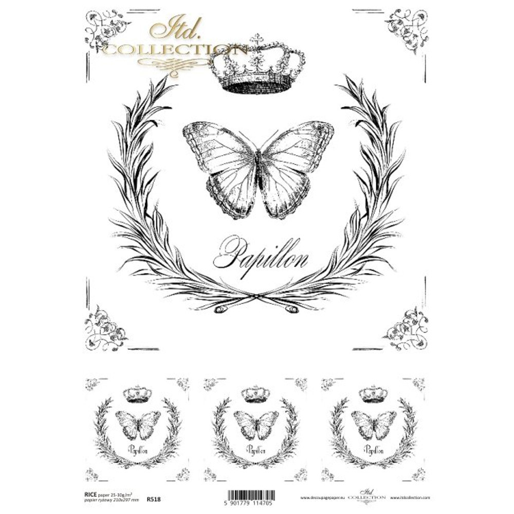 Dekupázs (decoupage) technikához használható rizspapír.A Dekupázsolás amennyire egyszerű, annyira nagyszerű módja a dekorálásnak. Egy natúr, szimpla dobozból is egy elegáns vagy rusztikus, antik hatást keltő dekorációt varázsolhatsz.Méret ~ 21x29,7cmA dekupázsoláshoz szükséges összes kelléket megtalálsz a weboldalon!