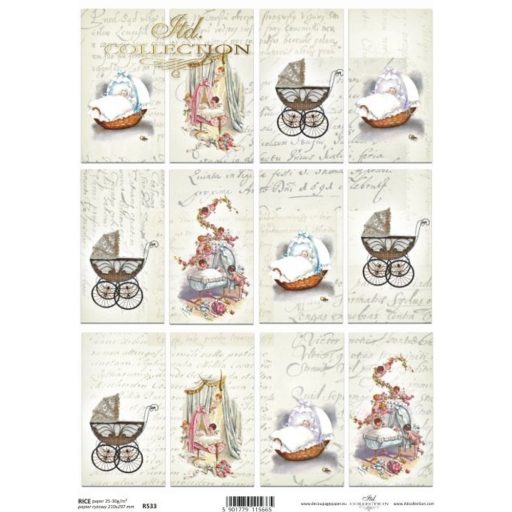 Dekupázs (decoupage) technikához használható rizspapír.A Dekupázsolás amennyire egyszerű, annyira nagyszerű módja a dekorálásnak. Egy natúr, szimpla dobozból is egy elegáns vagy rusztikus, antik hatást keltő dekorációt varázsolhatsz.Méret ~ 21x29,7cmA dekupázsoláshoz szükséges összes kelléket megtalálsz a weboldalon!