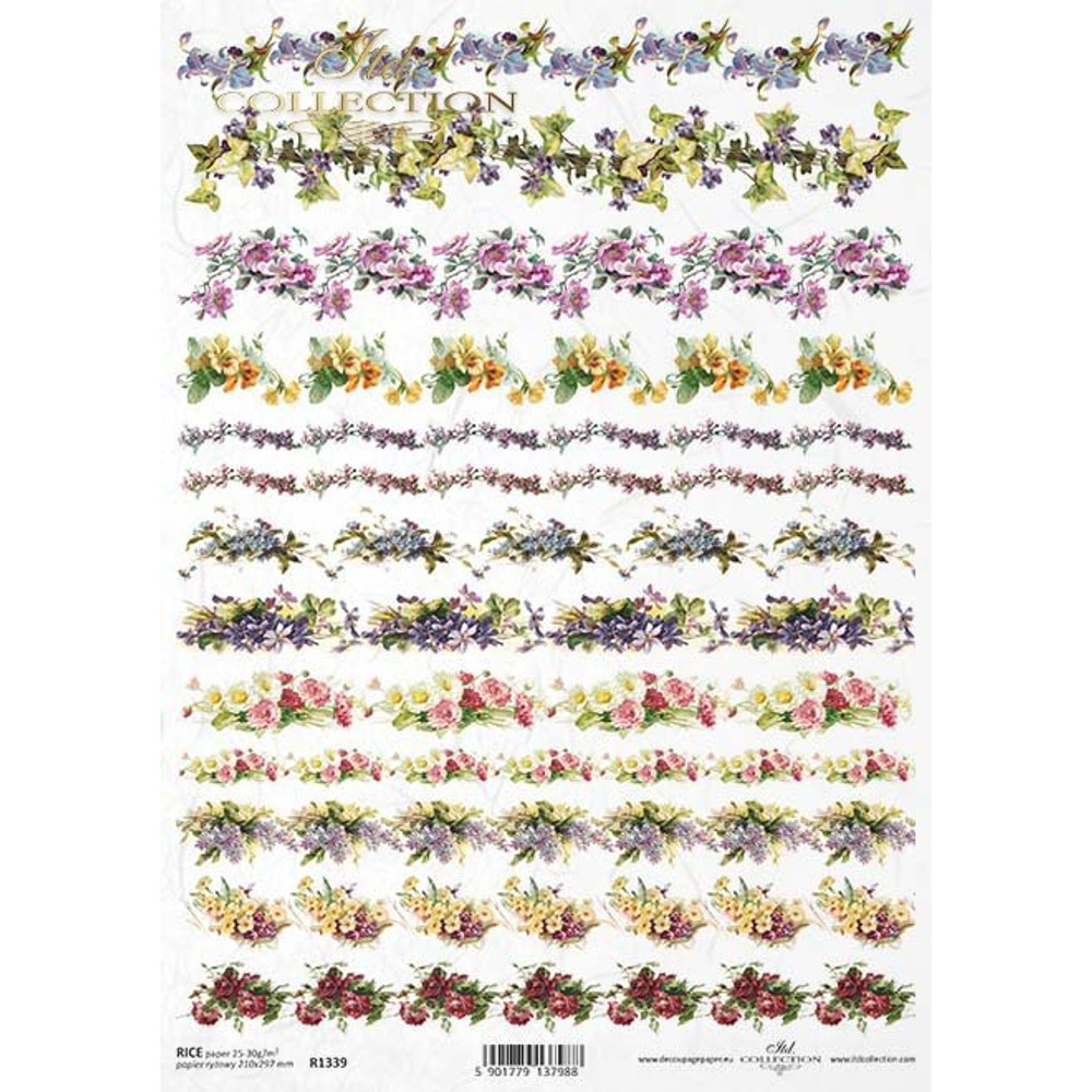 Felhasználható decoupage technikához, szalvétatechnikához és mixed mediához. 21x29,7cm. Kiváló minőségű rizspapír – könnyebben munkálható, mint a szalvéta. Fa, kerámia, üveg és textil felületre egyaránt tapad.