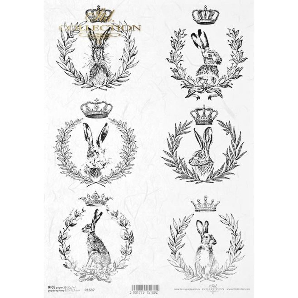Dekupázs (decoupage) technikához használható rizspapír.A Dekupázsolás amennyire egyszerű, annyira nagyszerű módja a dekorálásnak. Egy natúr, szimpla dobozból is egy elegáns vagy rusztikus, antik hatást keltő dekorációt varázsolhatsz.Méret ~ 21x29,7cmA dekupázsoláshoz szükséges összes kelléket megtalálsz a weboldalon!