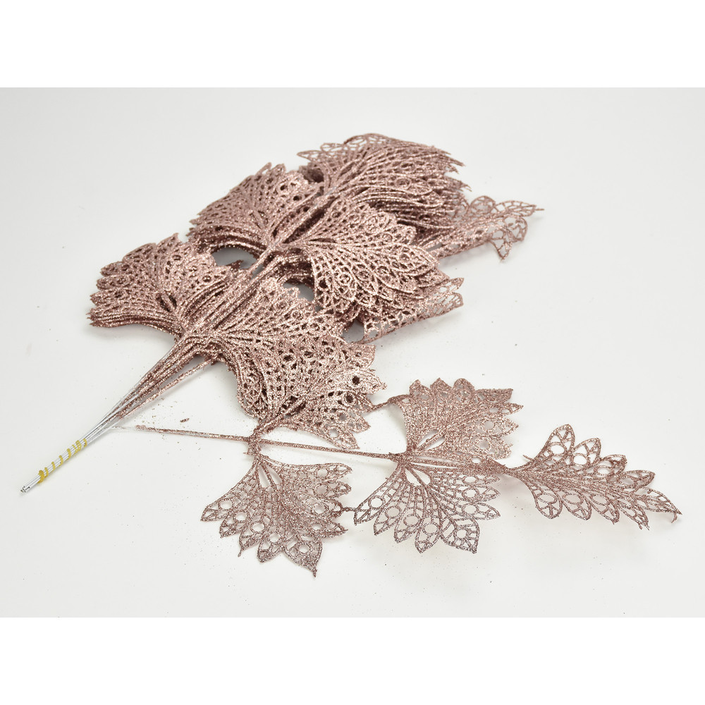 Rózsa-arany csillámos ötágú levél 10db/csomag – karácsonyi koszorúhoz és dekor ágként