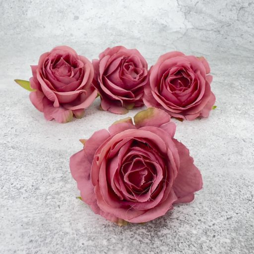 Rózsa fej - sötét rózsaszín 4db/cs – virágdekorációhoz és koszorúhoz