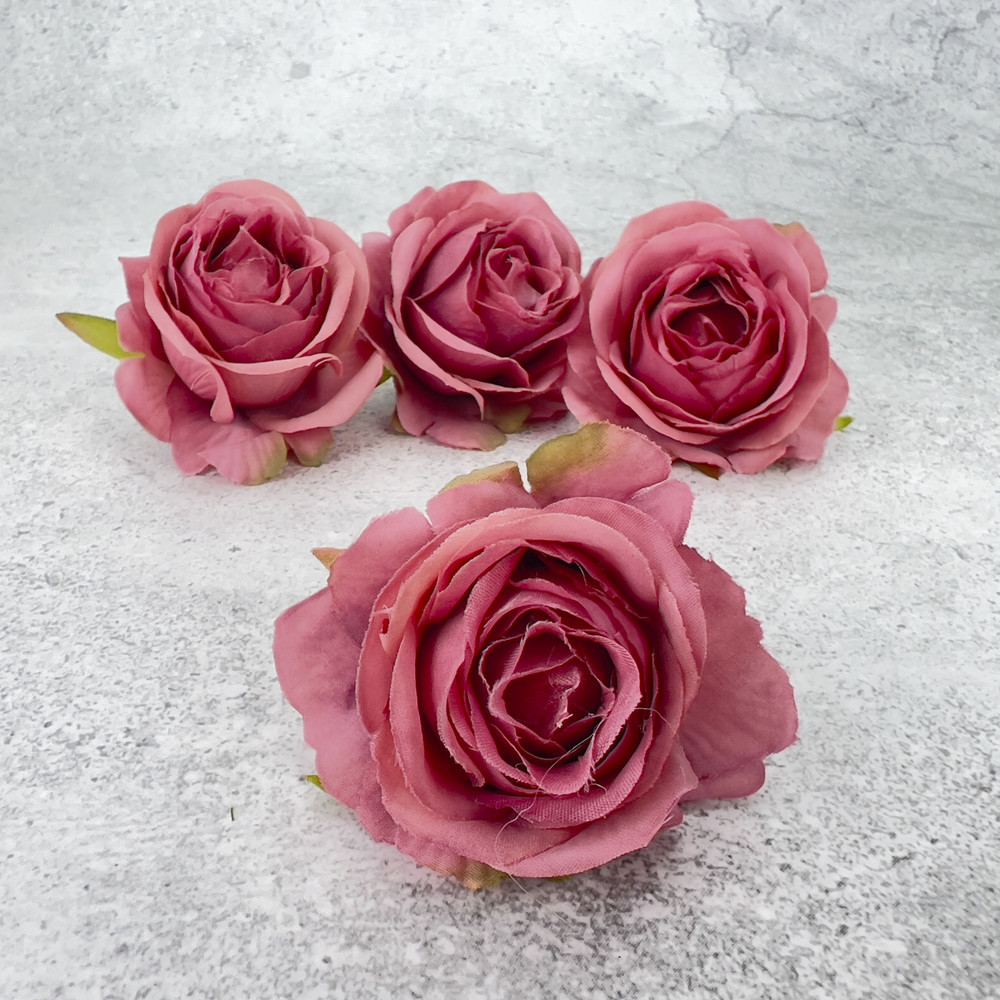 Rózsa fej - sötét rózsaszín 4db/cs – virágdekorációhoz, koszorúhoz