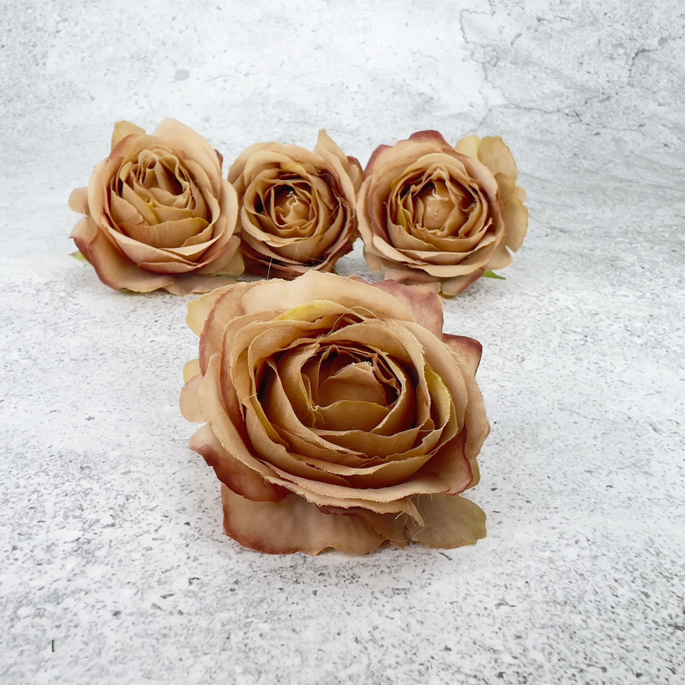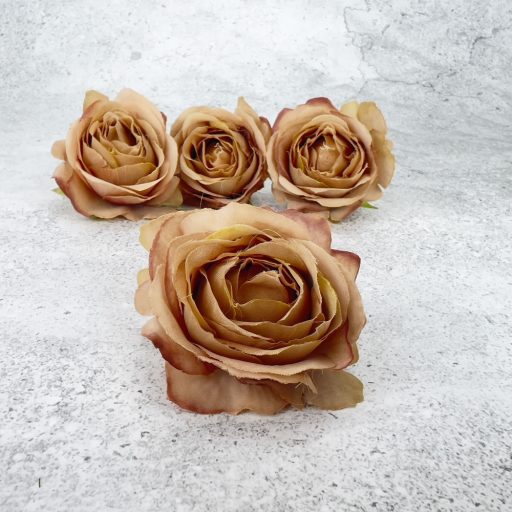 Rózsa fej - vintage barna 4db/cs – virágdekorációhoz és koszorúhoz
