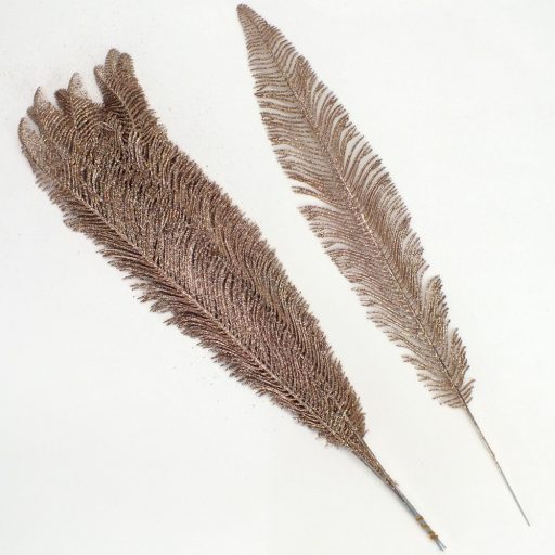 Csillámos toll formájú műnövény otthoni vagy kirakati díszítéshez. Önmagában vagy kiegészítő díszítéshez is.Méret: hossz: 55cm, szél: 12cm. Felhasználható természetes dekorációhoz, koszorúhoz és asztaldíszhez. Más termés