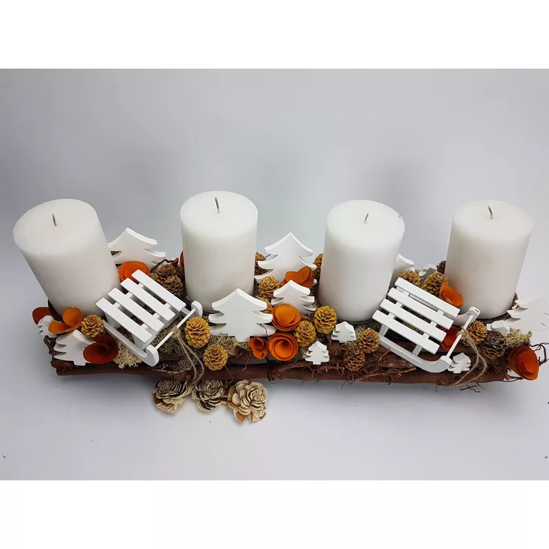 Szánkó fehér 8cm 4db/csomag – karácsonyi dekorációhoz és koszorúhoz