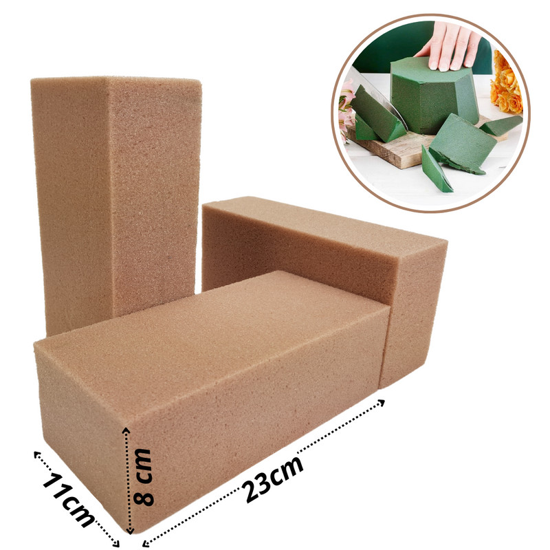Védőcsomagolással ellátott termék. Az oázis tűzőhab egy rendkívül hasznos eszköz a virágkötészetben és a dekorációs munkákban. A száraz oázis tűzőhab könnyen formázható, így ideális alapanyag virágcsokrok, koszorúk és dekoratív kompozíciók készítéséhez. Segítségével stabilan rögzíthetjük a friss vágott virágokat, zöldségeket vagy más dekorációs elemeket. Éles késsel vágható, formázható és ragasztópisztollyal vagy anélkül is rögzíthető (pl.: papírdobozokba). Használd ajándékdobozok készítéséhez, száraz növények, bombonok, pálcás díszek, táblák betűzéséhez.Méretek: széles: 23cm, hossz: 11cm, mag: 8cm