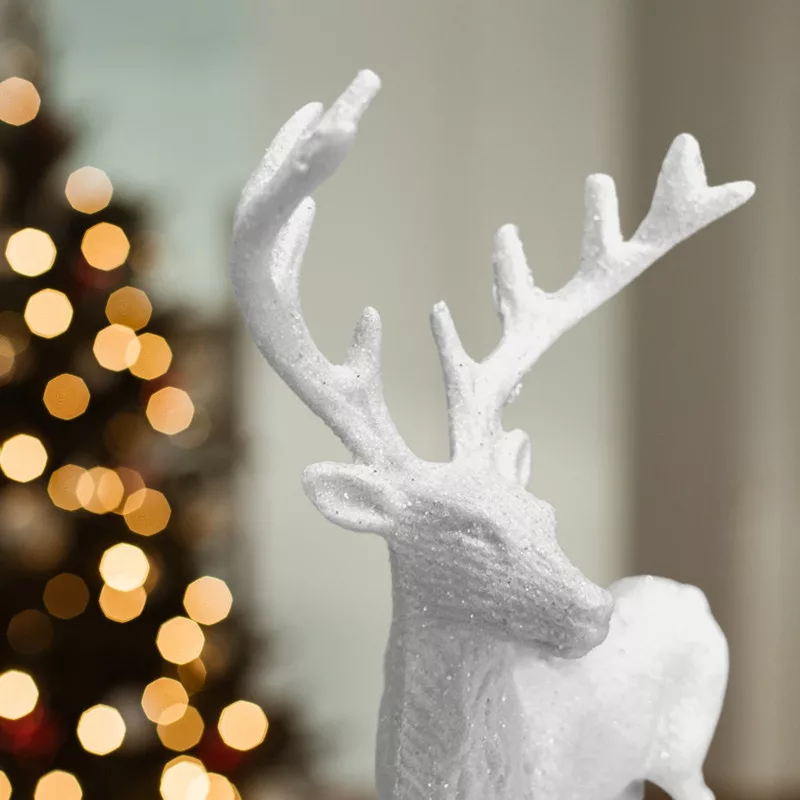 Szarvas csillámos fehér – karácsonyi dekorációhoz és koszorúhoz