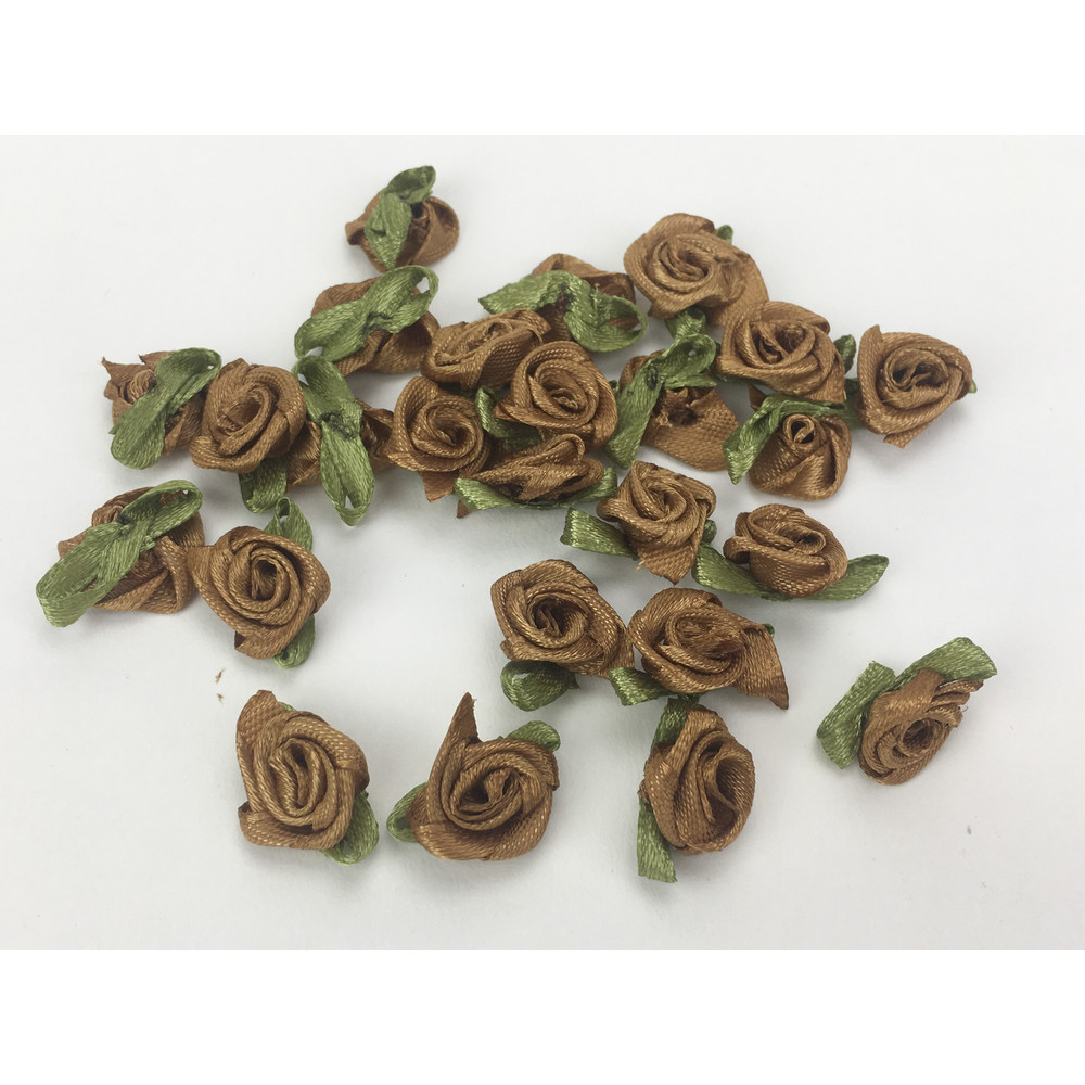 Szatén rózsafejek barna 25db/csomag KIFUTÓ – kreatív dekorációhoz