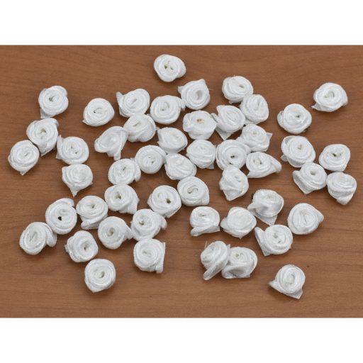 Szatén rózsafejek levél nélkül fehér 50db/cs – csomagoláshoz és dekorációhoz