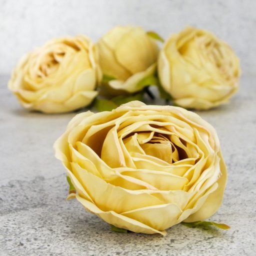 Százlevelű rózsa fej - krém sárga 4db/csomag – virágdekorációhoz és koszorúhoz