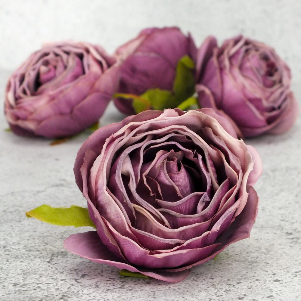 Százlevelű rózsa fej - vintage mályva 4db/csomag – virágdekorációhoz és koszorúhoz