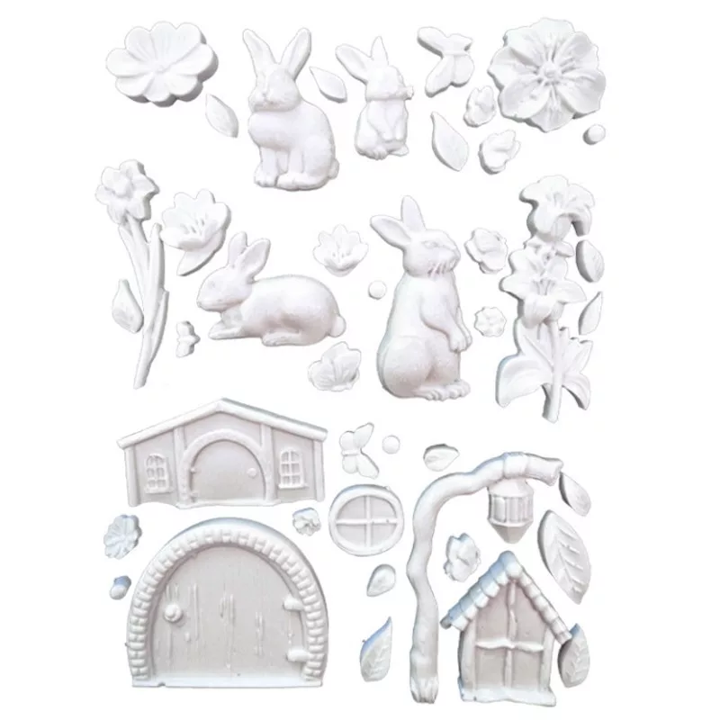 Szilikon nyomóforma - Könnyen és gyorsan készíthetünk finom részletekkel ékszereket, ajándékokat, dekorációs tárgyakat. Használhatjuk levegőn száradó és kisüthető gyurmához vagy elefántcsont gyantához is. Kiváló gipsz- és szappan öntéshez is. Szappanos vízzel tisztítható.Tábla méret: 21x14,8cm, vast.: 12mm. Felhasználható húsvéti és tavaszi dekorációhoz, koszorúhoz és asztaldíszhez.