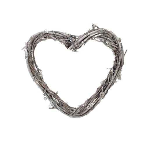 Vesszőből font szív formájú dekor alap, fém vázon és megerősített fém szállal.Méret: 20cm, vastagság: 20mm. Felhasználható esküvői és kerti parti dekorációhoz, asztaldíszhez. Virágokkal, szalaggal és egyéb ünnepi kelléke