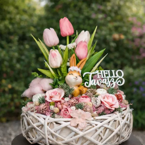 Varázsolj tavaszi hangulatot otthonodba ezzel az egyedi, kézzel készített asztali dekorációval! Ez a bájos "Csináld Magad" csomag tökéletes választás azoknak, akik szeretik a kreatív időtöltést és az egyedi díszeket. A gyönyörű rózsaszín tulipánok, a vidám nyuszi figura és a természetes elemek harmóniája egy igazi tavaszi csoda megalkotását teszi lehetővé. Akár saját otthonodat szépítenéd, akár egy különleges ajándékot készítenél, ez a csomag garantáltan örömteli perceket és látványos végeredményt nyújt. Az egyszerűen követhető útmutatónak köszönhetően bárki könnyedén elkészítheti – kezdők és tapasztalt kreatív alkotók egyaránt! Ez nem csupán egy dekoráció, hanem az alkotás élménye, amely melegséget és örömöt hoz a mindennapokba.
