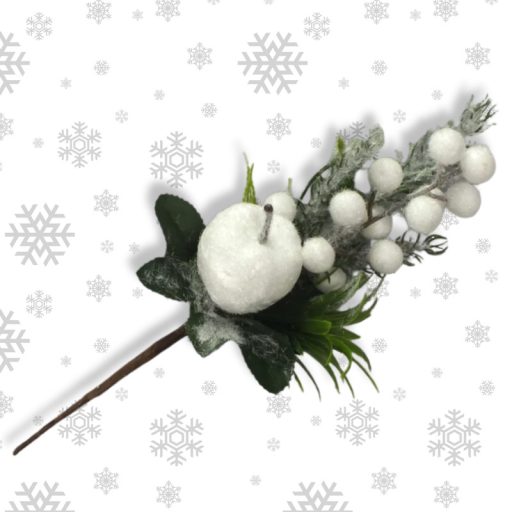 Téli pick - havas almával bogyókkal – virágdekorációhoz és koszorúhoz
