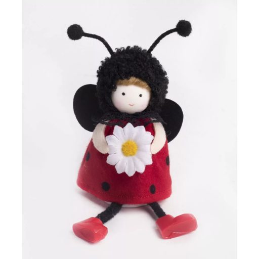 Textil katicalány, fehér virággal, lógólábú 16cm 067772 – tündérkerthez és kerti dekorációhoz