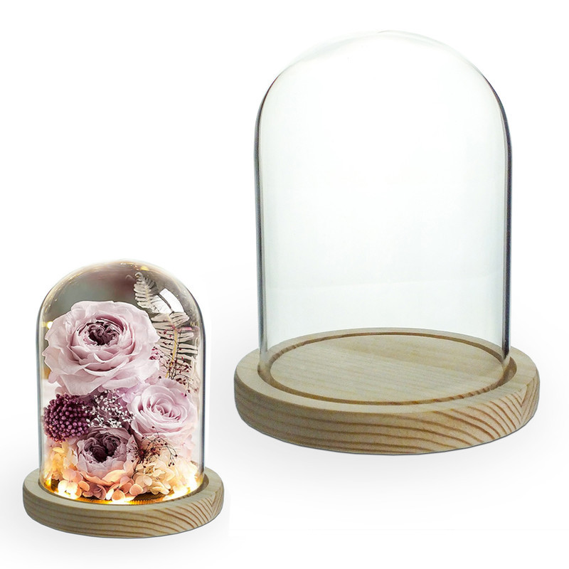 Üvegbúra fa talppal 11*15cm – esküvői dekorációhoz